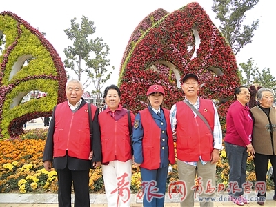 公交集團(tuán)電車分公司二十六路隊(duì)志愿者陪空巢老人游世園。