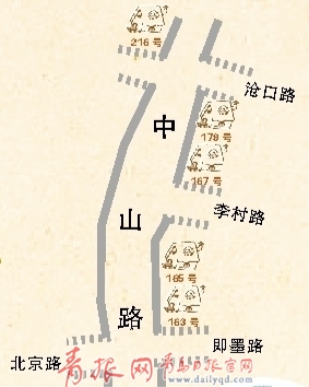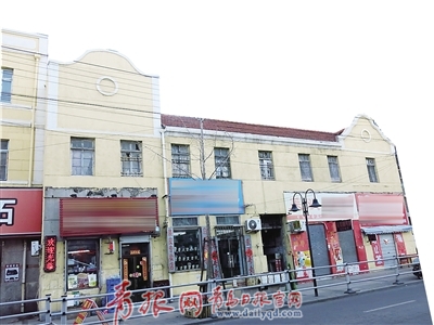 中山路165號是棟3層高的里院,從街口看是棟“L”形建筑,花崗巖筑基,黃色墻面,紅瓦屋頂。在建筑的頂部有白色的粗線條裝飾,配有漂亮的山墻,山墻上白色的圓盤內(nèi)配有立體的8瓣花裝飾。在中山路上散步的劉姓老人告訴記者,這棟樓有80多年歷史,解放前是家書店,解放后新華書店也在這開過。