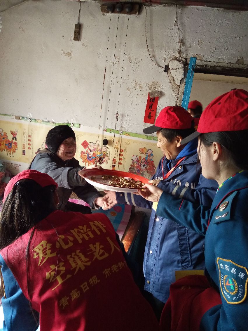 ??? 經(jīng)過多次走訪結(jié)對任秀蘭老人,老人早已將我們視為兒女。聽說我們今天要去看望她,老人將不舍得吃的新花生拿出來,在我們志愿者來的時候給我們現(xiàn)炒花生,熱情的讓我們嘗嘗她的手藝??粗先送姘愕男δ?,我們的心里也是暖暖的。該圖為老人拿花生讓我們志愿者品嘗。