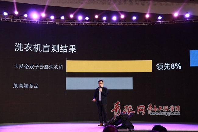 洗衣機盲測結(jié)果為卡薩帝雙子云裳洗衣機領(lǐng)先某高端競品8%。青島日報/青報網(wǎng)記者張麗潔攝
