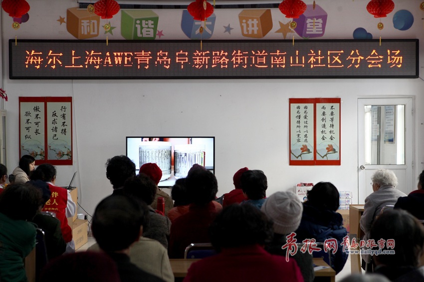圖為青島市市北區(qū)阜新路街道南山社區(qū)分會(huì)場(chǎng)。