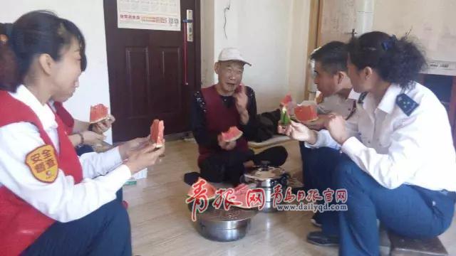 大家陪老人吃著西瓜拉著家常,當(dāng)大叔得知王艷因工作原因調(diào)到六路隊(duì)工作時(shí),戀戀不舍地說(shuō):“我可真舍不得你走??!這么多年你一直照顧著我,可現(xiàn)在我感覺(jué)真閃人?!?/p>