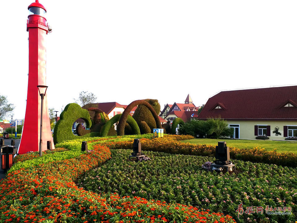 會(huì)場入口處,鮮花盛開,綠草如茵。