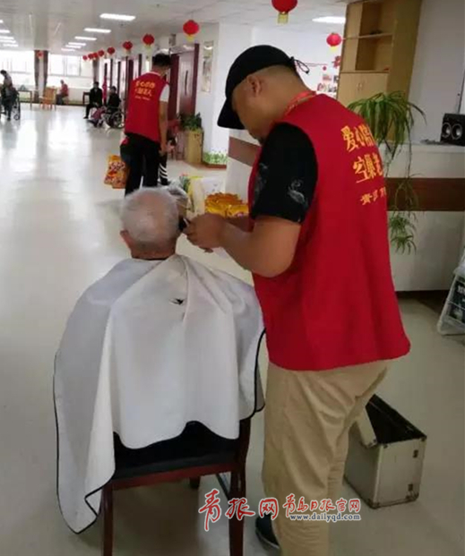 ????青島五洲通工貿(mào)有限公司為老人提供了慰問品。王海洋、劉愛紅夫婦為老人理發(fā),志愿者和交警們仔細(xì)詢問了老人們生活情況和健康狀況。
