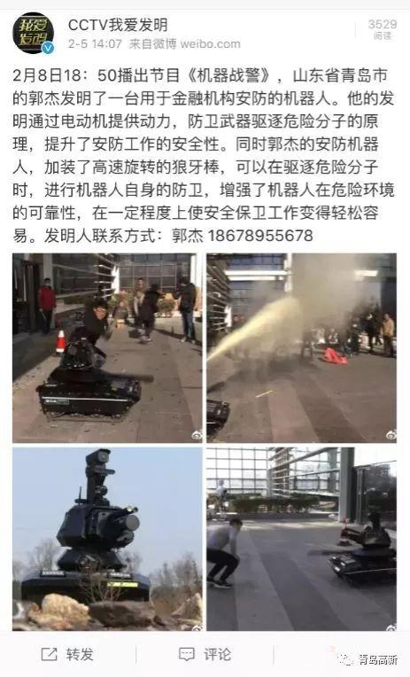 青島高新區(qū)通產(chǎn)智能安保機器人成功登陸央視10套《我愛發(fā)明》欄目