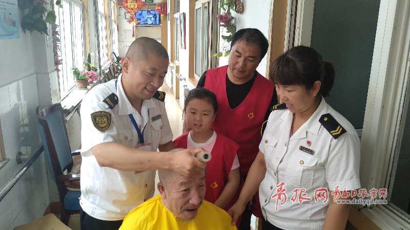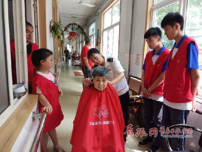 青島日?qǐng)?bào)/青島觀(guān)/青報(bào)網(wǎng)訊? 7月5日上午,交運(yùn)溫馨巴士“馨飛揚(yáng)”愛(ài)心陪伴工作室組織志愿者到興城養(yǎng)老院為老人們理發(fā),空調(diào)清洗和維護(hù)。共有十幾名志愿者參與本次志愿服務(wù),其中包括李村小學(xué)三年級(jí)二班的曲芊穎小志愿者和三十三中的李延斌和王乾赫。
