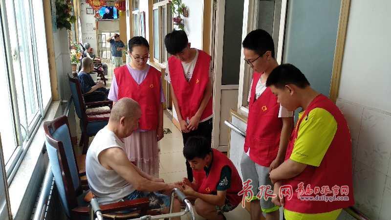 小志愿者們一進(jìn)門,養(yǎng)老院的老人們就熱情地給孩子們打招呼,94歲高齡的劉京叢老人說:“你們又來幫我們干活了,這么熱的天,辛苦你們了!” ??