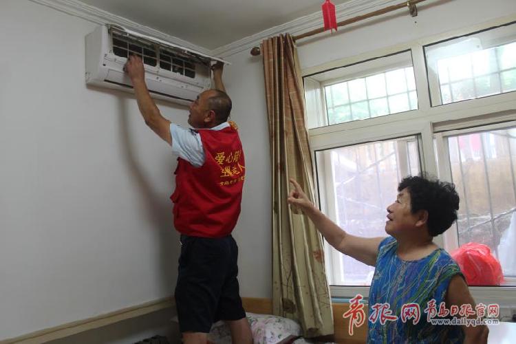 閑談之中,志愿者陳建偉聽說老人想給家里的空調(diào)機做一下清洗,陳建偉二話沒說,自己動手將郭阿姨家的空調(diào)拆開清洗了一番,還特意給老人把空調(diào)濾網(wǎng)仔細了擦洗干凈。