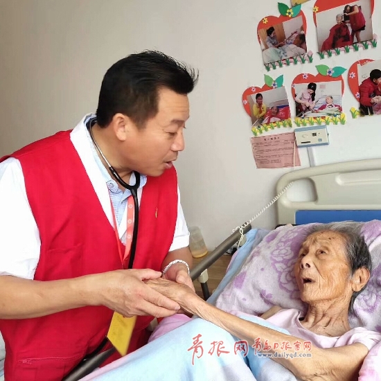????青島日報/青島觀/青報網(wǎng)訊 一年一度的中秋節(jié)、國慶節(jié)即將到來,膠州市紅十字幸運草志愿服務(wù)隊開展了“迎中秋慶國慶節(jié)、情暖夕陽送健康”為主題的活動。因不是周末,其他志愿者上班,而隊長劉學(xué)文不顧夜班的疲勞,冒雨驅(qū)車趕往膠西鎮(zhèn)高麗養(yǎng)老院,為老人們義診查體送健康。