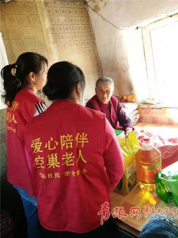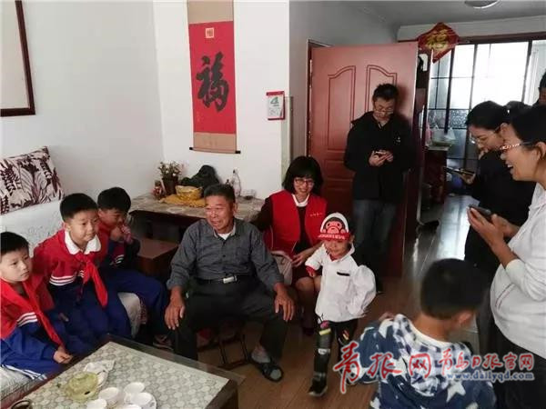 在社區(qū)工作人員的帶領(lǐng)下,志愿者們拿著慰問探望老軍人的花生油、奶、雞蛋、餅干等物資,到付家埠社區(qū)的3位老軍人家庭慰問。