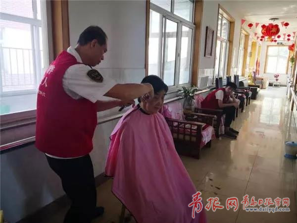 青島日?qǐng)?bào)/青島觀/青報(bào)網(wǎng)訊? 9月5日,李滄區(qū)興城養(yǎng)老院里,40多名老人足不出戶就理了頭發(fā),還不用花錢。這是“愛心陪伴”交運(yùn)溫馨巴士“馨飛揚(yáng)”愛心陪伴工作室開展的免費(fèi)為老人理發(fā)志愿活動(dòng),讓老人們感受到來自社會(huì)的關(guān)愛。
