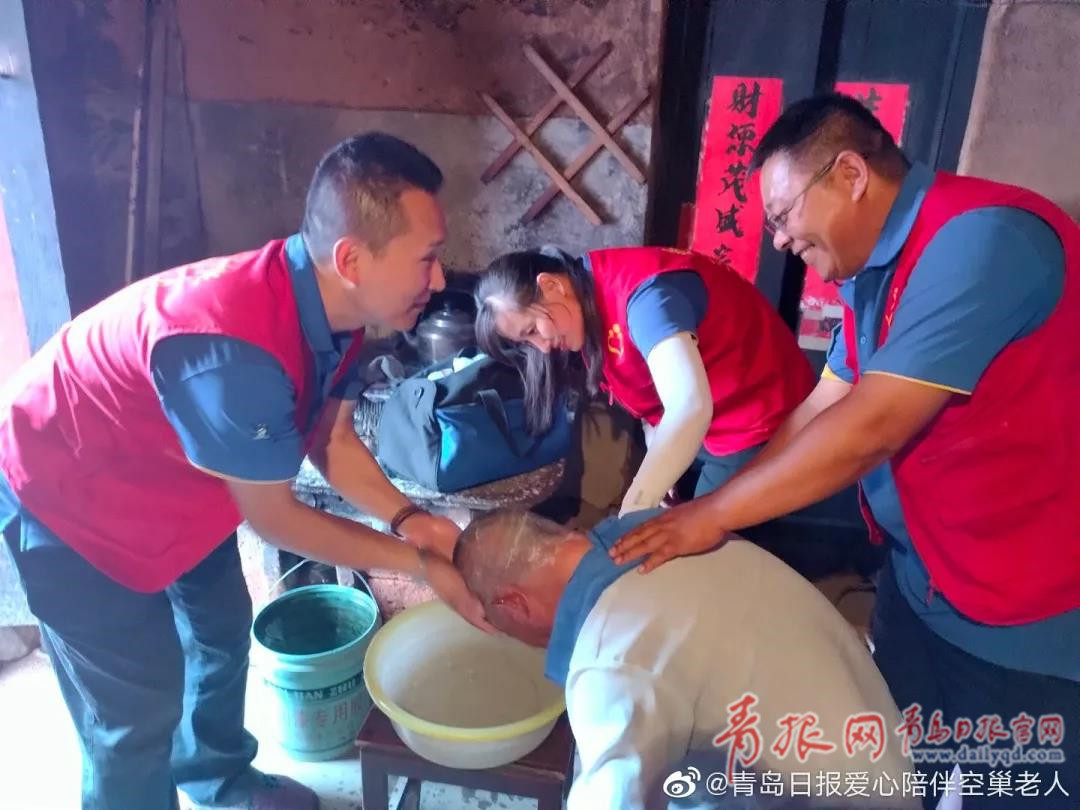 志愿者薛冰潔一邊笑著攙扶老人坐到椅子上,一邊說(shuō):“您出門不方便,我們過(guò)來(lái)是應(yīng)該的?!闭f(shuō)著志愿者張盼拿出工具開(kāi)始給侯大爺洗頭,理發(fā),二十幾分鐘過(guò)后,侯大爺精神面貌煥然一新!
