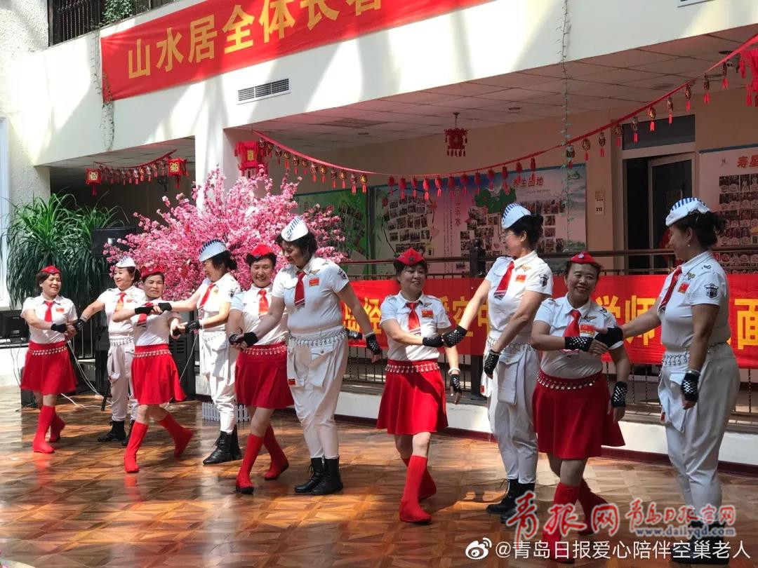 志愿者們?yōu)槔先藗兯蜕狭司实墓?jié)目,吉他演唱,健身操,小合唱《我和我的祖國》等節(jié)目,“青島經(jīng)濟廣播·空中老年大學藝術(shù)團”的藝術(shù)家們和山水居的老人則準備了精彩的“水兵舞”,誦讀及模特表演等精彩的演出。
