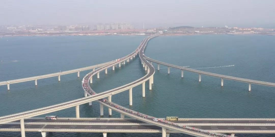 上午8:30,17000多名來(lái)自世界各地的參賽選手迎著燦爛的朝陽(yáng)在膠州灣跨海大橋上正式開(kāi)啟了“橋”首以盼的“最酷路跑賽事”。據(jù)介紹,本次比賽共分為五個(gè)項(xiàng)目,其中,半程路線(xiàn)是由方特夢(mèng)幻王國(guó)出發(fā)經(jīng)華強(qiáng)路至華中南路,然后到膠州灣大橋紅島收費(fèi)站,再經(jīng)紅島互通匝道(青島方向)原路折返,以華強(qiáng)路為終點(diǎn);10公里體驗(yàn)組路線(xiàn)是從方特夢(mèng)幻王國(guó)出發(fā)到華強(qiáng)路經(jīng)華中南路到膠州灣大橋紅島收費(fèi)站,再到紅島互通匝道(青島方向),最終到達(dá)終點(diǎn)膠州灣大橋(青島方向)。親子跑路線(xiàn)賽道為方特夢(mèng)幻王國(guó)內(nèi)2公里。