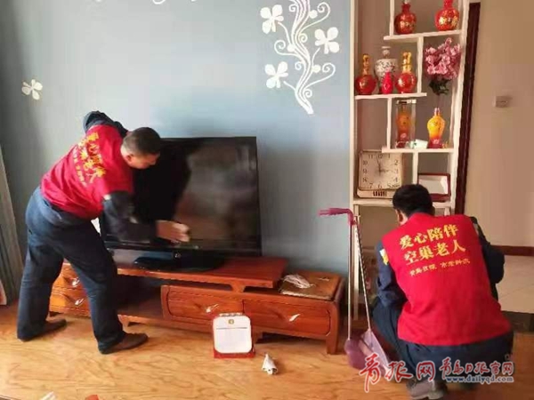四名志愿者來了之后,一閑沒閑,分工協(xié)作。有的給大爺檢修暖氣管道是否漏水,有的忙著拖地收拾衛(wèi)生,有的摘菜洗菜和面準(zhǔn)備包水餃。