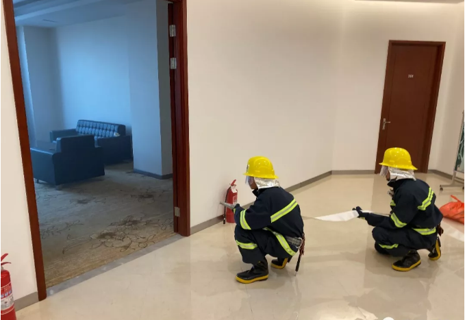 當(dāng)天下午4時(shí),“起火點(diǎn)”在行政審批服務(wù)大廳三樓燃起,煙氣很快在行政審批服務(wù)大廳三樓接待室內(nèi)彌漫開來。當(dāng)警報(bào)聲響起,工作人員迅速啟動(dòng)應(yīng)急預(yù)案,并指揮相關(guān)人員進(jìn)行現(xiàn)場(chǎng)救援,全體人員用演練前規(guī)劃的安全逃生路線引導(dǎo)辦事群眾有效撤離,撤離過程中不搶道、不驚慌,高效有序地撤離到安全地帶,并集合清點(diǎn)人數(shù)及時(shí)向活動(dòng)總指揮報(bào)告。警戒組負(fù)責(zé)出入口安全警戒,保證通道暢通,醫(yī)療組人員現(xiàn)場(chǎng)待命。