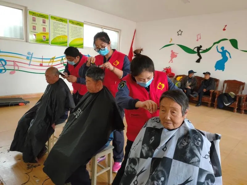 “大爺你想要頭發(fā)留長點還是短點?”,2020年4月9日,真情巴士集團愛心媽媽志愿服務團隊和一路情志愿團隊的志愿者們張秀寶、蔡萬江、矯菊英、封守花、李春立、張萍萍來到龍灣崖社區(qū)服務站進行愛心陪伴活動,為老人們志愿理發(fā)。