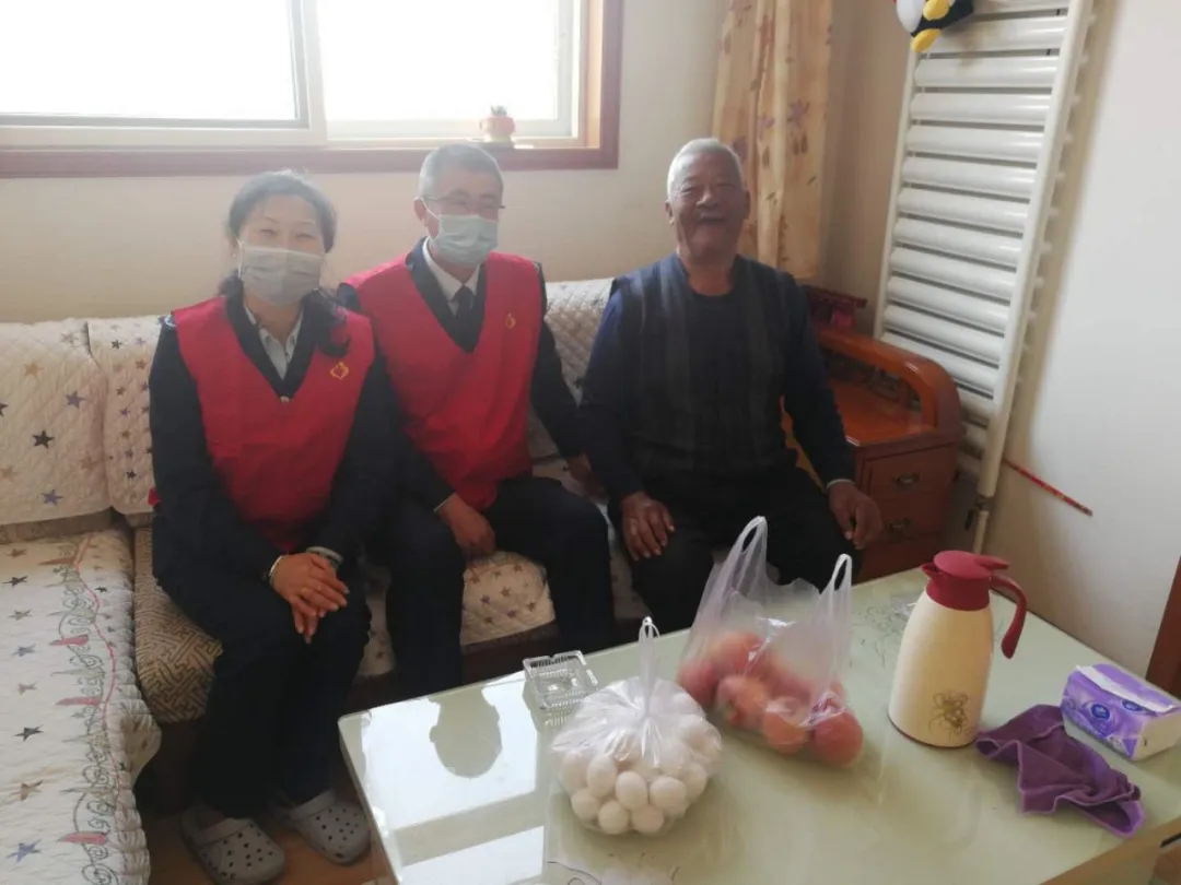 時間總是很快的,不知不覺一個多小時過去了,志愿者們和老人道別。接著來到王維芳大爺家,一進門,王大爺正悠閑的在院子曬太陽,見到志愿者們的到來,先是一愣,突然間回過神來:“哎呀!好孩子們,你們來啦!快快進屋坐?!敝驹刚邆冋f:”由于前一個月疫情期間,為了大家的安全,我們也不方便來看您,只能打個電話問候問候,請您理解?!敝驹刚邔先藝u寒問暖,聊了許多。