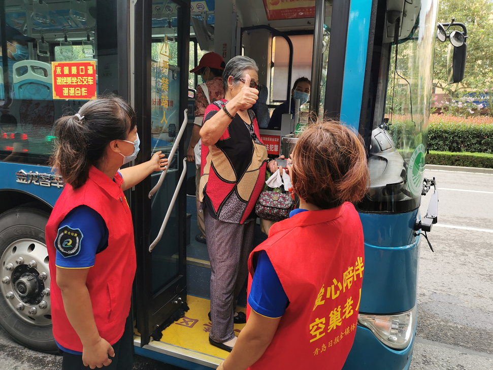 8月31日,“愛(ài)心陪伴”真情巴士第一分公司滴水真情、一路情和愛(ài)心媽媽志愿服務(wù)團(tuán)隊(duì)的志愿者們陳云嬌、韓芳、許崇啟、王娜、王淑娟來(lái)到西海岸新區(qū)后灣大集開(kāi)展幫助老年人趕大集乘車(chē)。