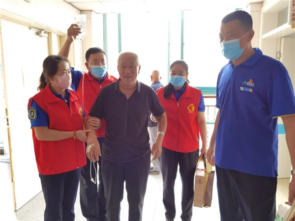 薛增光大爺家中兩個兒子,大兒子在廣東,小兒子外企上班,需要經(jīng)常到國外出差,無法經(jīng)常在家中陪伴薛大爺和他的老伴,志愿者們便定期來看望薛大爺。幾天前,志愿者于義睦接到了薛增光大爺?shù)睦习檠Υ竽锏碾娫挘娫捴械弥Υ鬆敻械缴眢w不適,擔(dān)心人手不夠,便急忙聯(lián)系另一名志愿者盧振華向其說明情況。兩人立馬放下手中忙碌的事情,來到薛大爺家中,開私家車將薛大爺送往西海岸新區(qū)第二中醫(yī)醫(yī)院。由于治療及時(shí),薛大爺被診斷為輕微腦梗,但仍需要繼續(xù)留院觀察。由于考慮到薛大娘患有羊角風(fēng),無法長時(shí)間進(jìn)行陪床,孩子也正在往青島趕的路上,志愿者于義睦便將團(tuán)隊(duì)里的核心骨干根據(jù)班次進(jìn)行排班,大家每日根據(jù)自己的時(shí)間來到第二中醫(yī)醫(yī)院,為薛大爺擦拭臉頰、擦拭身體,對薛大爺進(jìn)行悉心照料。