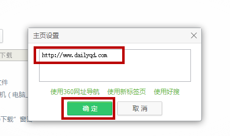3.在輸入框內(nèi)輸入" http://m.xiaofei2008.com/" ,點擊確定,設(shè)置成功。