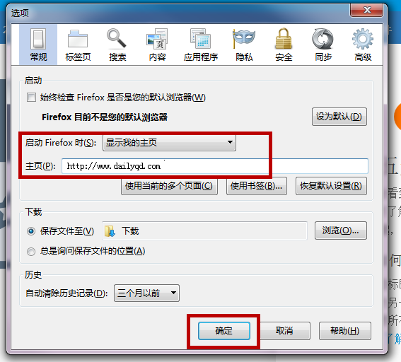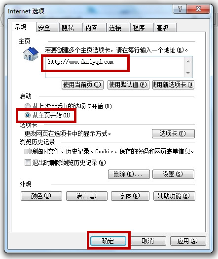 2.選擇"常規(guī)"選項,在"主頁"后的框中填入"http://m.xiaofei2008.com" ,點擊確定。